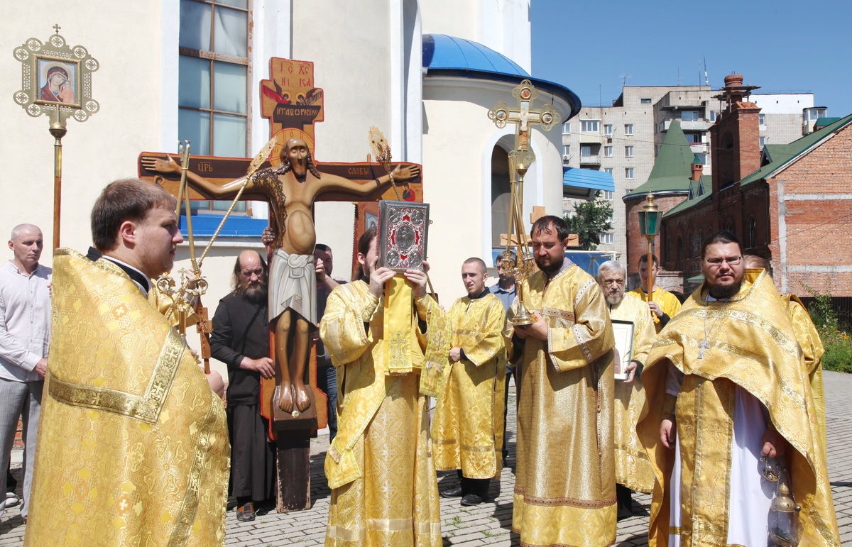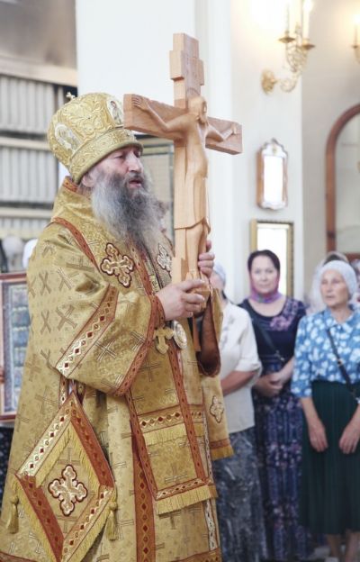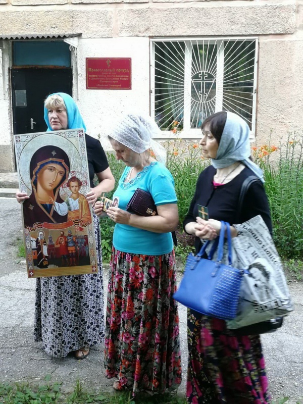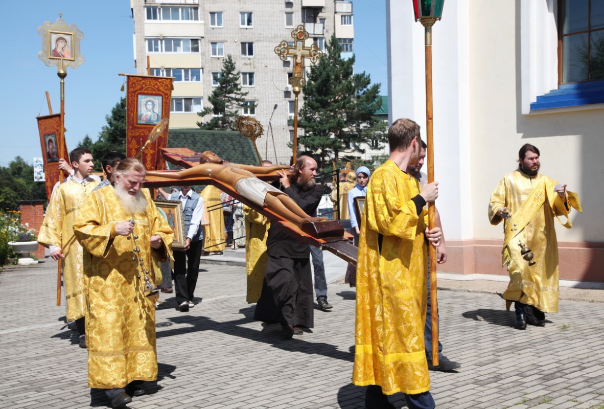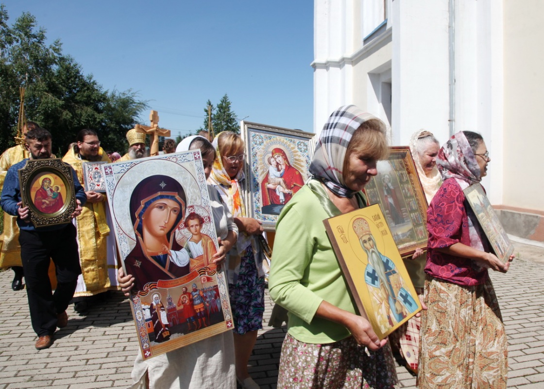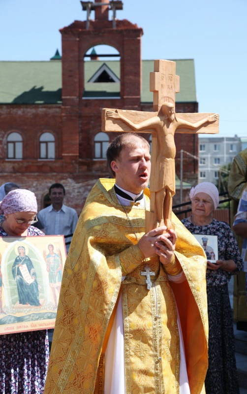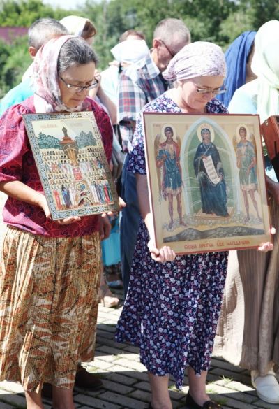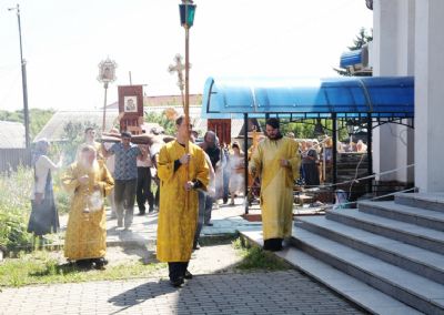 В воскресенье 26 июля мы принесли Крест в Арсеньев. Здесь был совершен молебен с Крестным ходом. Потом поехали в Кокшаровку. Там собрались четверо батюшек и много народа. Для нас это такая благодать – маленький деревенский храм, а столько людей!