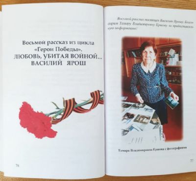 Меня неоднократно просили собрать воедино все напечатанные в газете «Северное Приморье» за этот промежуток времени очерки и стихи и я просто не могла не издать эту книгу! Пусть она получилась не очень большой по объему и напечатана ограниченным тиражом, но я вложила в эту книгу частичку своей души. Проделана непростая и ответственная работа, мне пришлось пропустить через свое сердце судьбу каждого человека, о котором писала. В сборник вошли публикации о ветеранах Великой Отечественной войны, о детях, переживших ужасы блокады и концлагерей, о доблестных тружениках тыла, приближавших Победу и восстанавливающих страну из руин. Я очень надеюсь, что изданная книга – не финал творческого проекта «Герои Победы», и хочу, с Божьей помощью, продолжить публикации новых материалов о тех, кто ценой собственных жизней подарил нам мир!