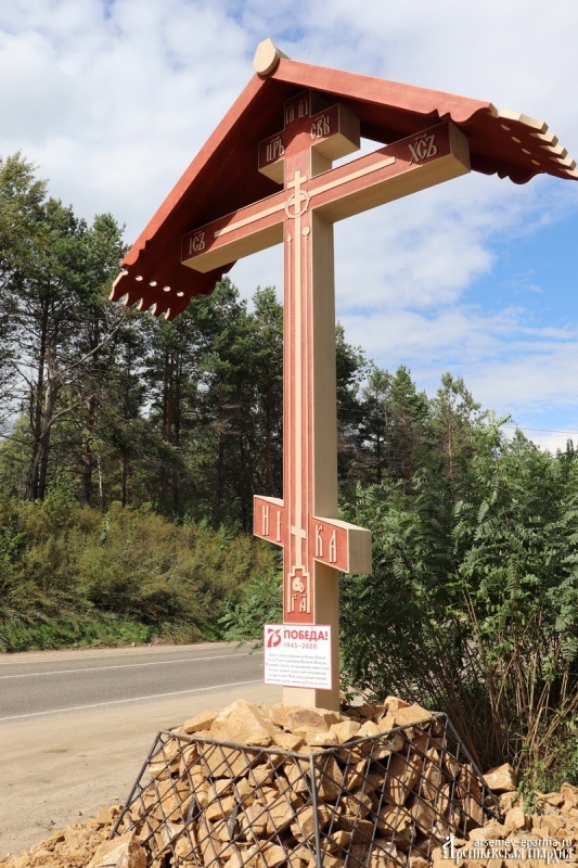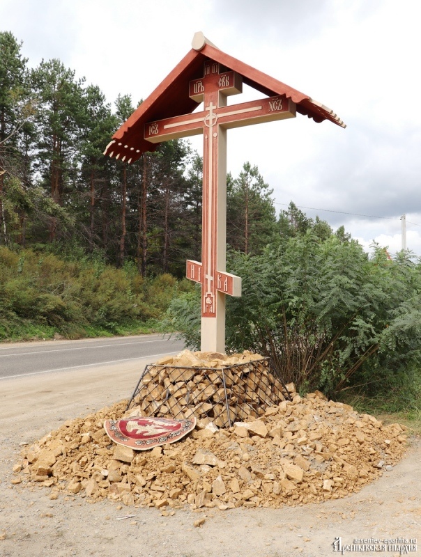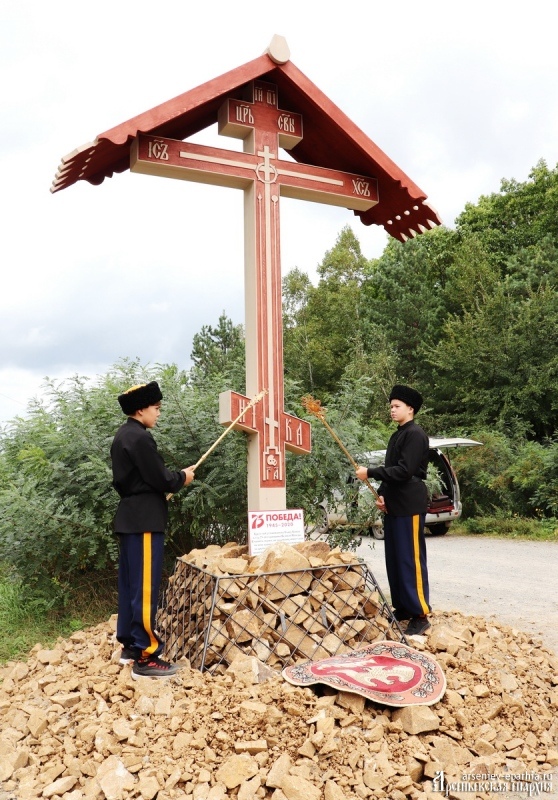 Справка: Крест установлен в рамках губернаторского гранта на проект казаков Даубихинского городского казачьего общества «Поклонный Крест». Всего планируется установка 12 Крестов: уже были поставлены Кресты в Гражданке и Корниловке, планируется установка в Анучинском и Яковлевском районе.