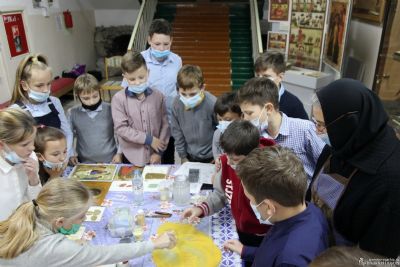 29-30 сентября в Музейно-выставочном центре г. Дальнегорска прошли 3 мастер-класса по иконописи. Инокиня Дария (Муленкова), член Союза художников г. Москвы, иконописец Арсеньевской епархии, рассказала, что такое яичная темпера и как её изготовить, показала школьникам и взрослым, как растираются краски из натуральных пигментов, как наносятся краски на подготовленную доску. Ребята смогли попробовать свои силы в растирании красок и работы с ней, узнали много нового об иконописи и русской культуре.