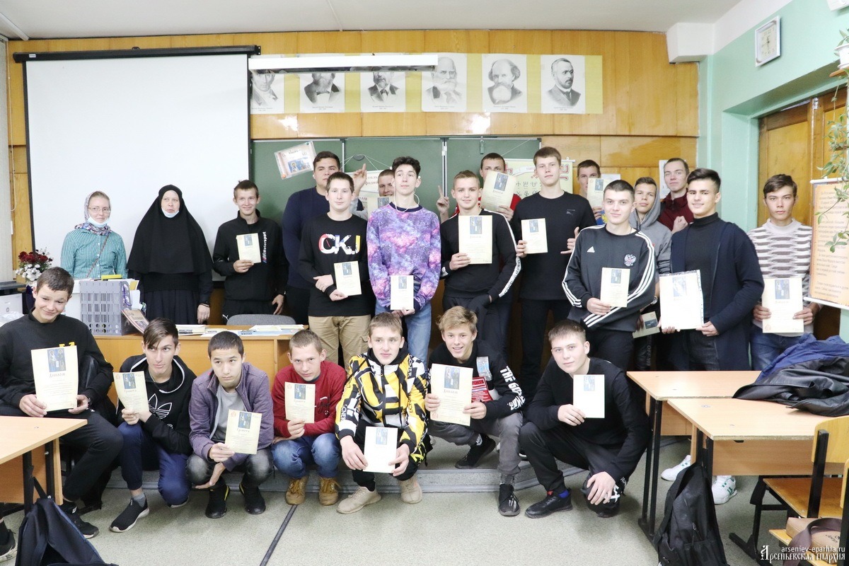 Информация из официального инстаграм-аккаунта колледжа: «Представители Арсеньевской епархии провели занимательную квест-игру по славянской письменности. Студенты узнали откуда произошла наша родная письменность, раскрылись интересные факты о том, как раньше печатали книги и многое другое. Ребята остались очень довольны квестом, задавали много вопросов, им было интересно! Победители игры были награждены памятными дипломами и все участники почётными грамотами».