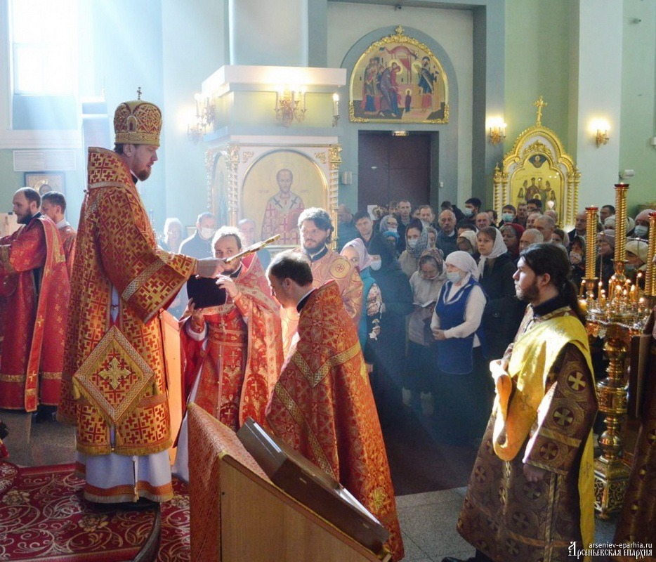 Перед началом литургии епископ Арсеньевский и Дальнегорский Гурий совершил последнюю литию по иерею Павлу Лазареву.