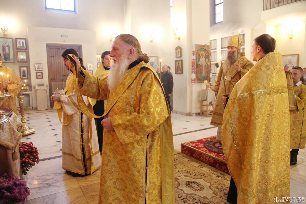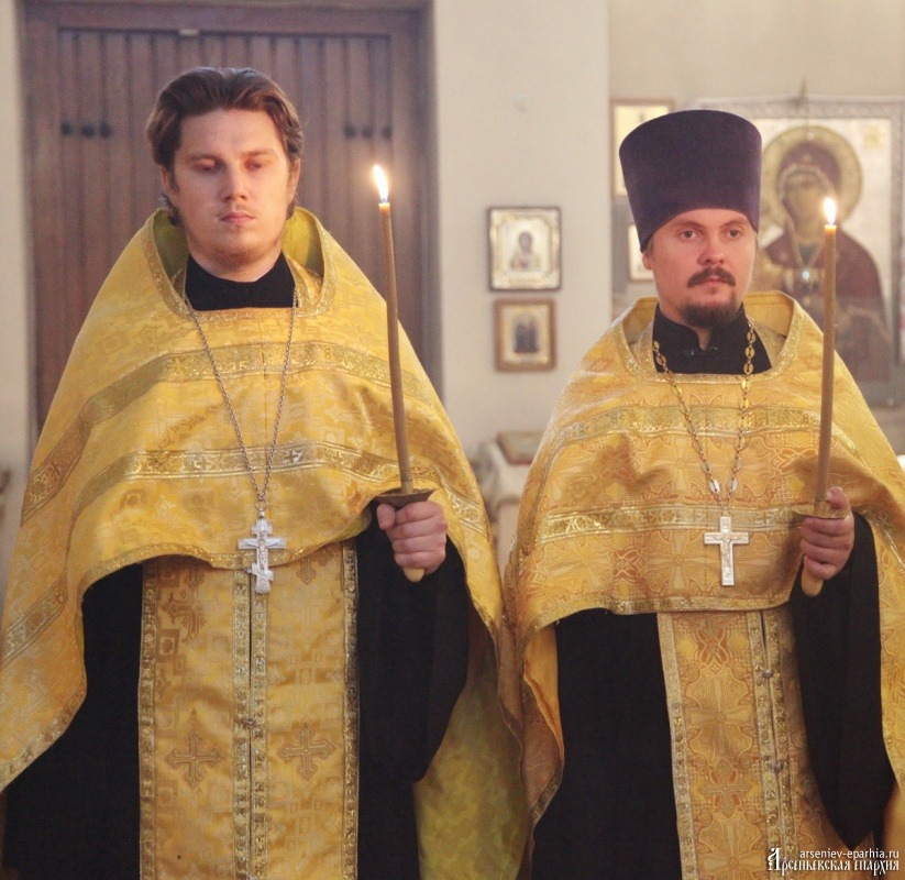 Архипастырям сослужили: благочинный II Владивостокского благочиния, ключарь собора иеромонах Иоанн (Костин), игумен Антоний (Каменчук), игумен Тихон (Иршенко), протоиерей Игорь Шевчук, иерей Максим Точуков, иерей Владимир Плотников, клирик Арсеньевской епархии иерей Николай Колесников.