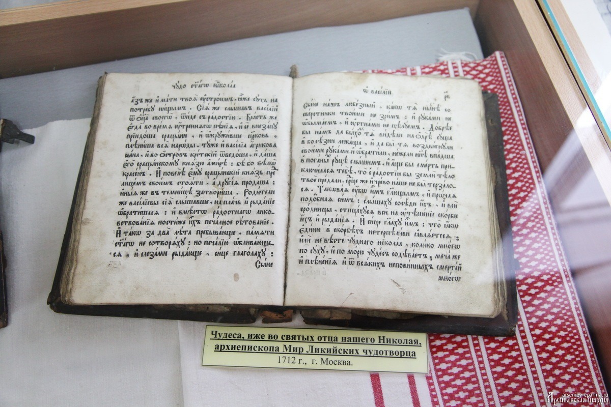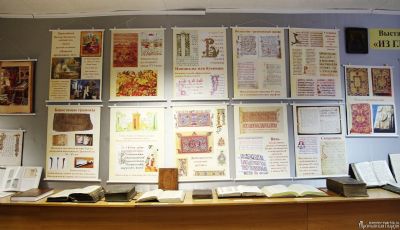 На выставке, которая проходит в рамках проекта «Дальневосточная ярмарка русской культуры» (при поддержке Фонда президентских грантов), представлены первые берестяные записки, древнейшие книги для богослужений, жития святых для домашнего чтения, первые печатные и рукописные книги, одной из которых более трёхсот лет, описания путешествий, деловая переписка. Выставка будет работать до 22 ноября, поэтому каждый желающий может рассмотреть древние книги. Также на витринах выложены различные складни конца XIX века, нательные крестики XVIII века, кресты наперсные из меди и латуни, различные иконы XVIII – XIX веков.