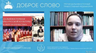Пресс-секретарь Арсеньевской епархии Екатерина Придворова представила проект “Дальневосточная ярмарка русской культуры”. Он реализуется уже второй год. Но в этом году, в отличие от прошлого свои коррективы внесла пандемия коронавируса, и пришлось мероприятия перенести в онлайн-формат. Среди мероприятий ярмарки: мастер-классы по иконописи, выставки русского народного костюма и предметов быта, старинных книг, квесты по русской письменности. Благодаря онлайн-формату к участию смогли подключиться участники даже из-за рубежа. Знаковое мероприятие проекта “Ярмарка хоров” перенесена на следующий год. Проект получил широкое медиаосвещение.