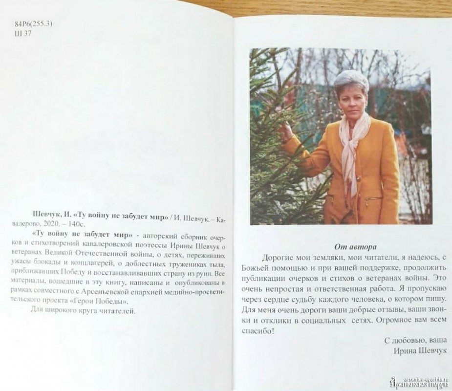 Когда я писала свои статьи и стихи о войне, то постоянно ловила себя на том, что мысленно общаюсь с ним — человеком, которого никогда лично не знала, который ушел в вечность, так и не узнав, что живут на этой земле, хранят добрую память о нем, его, уже далеко не молодые дочери, их дети — его многочисленные внуки, правнуки и даже праправнуки! Он ценой своей жизни, подарил ее нам, и мы никогда этого не сможем забыть! Я очень надеюсь, что изданная книга — не финал творческого проекта “Герои Победы”, и хочу, с Божьей помощью, продолжить публикации новых материалов о тех, кто ценой собственных жизней подарил нам мир!”, — рассказала Ирина Шевчук.