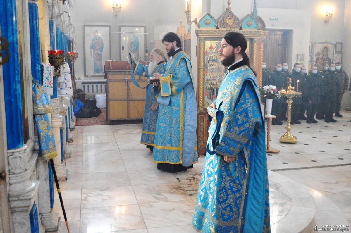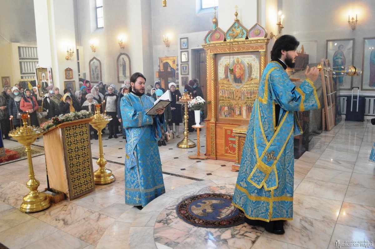 Архиереям сослужили ключарь собора иерей Александр Ступа, протоиерей Николай Хоменко, иерей Димитрий Овчинников, иерей Андрей Васякин, иеромонах Варсонофий (Рыжов), иерей Михаил Котенко, иерей Владимир Пыжиков.