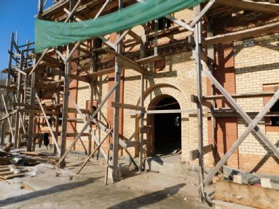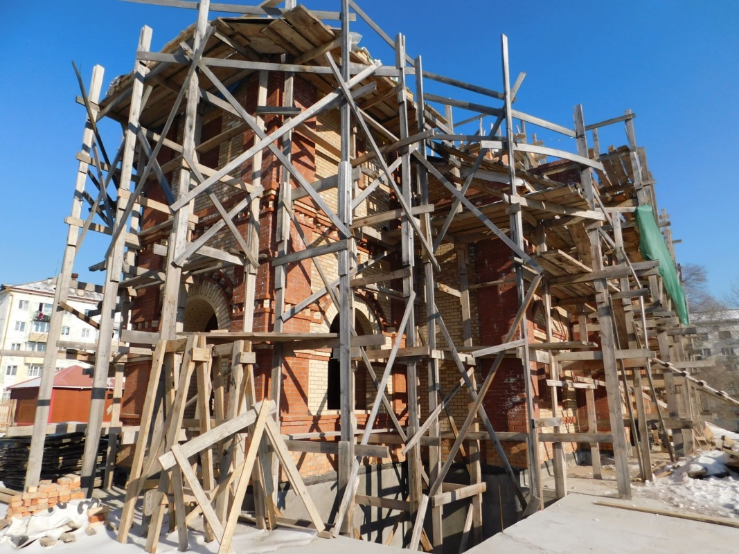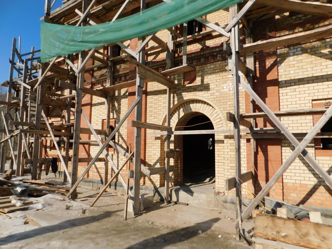 Строящийся храм расположен на въезде в микрорайон, поэтому все горожане могут наблюдать этапы его строительства. Красивое кирпичное здание пока «одето» в строительные леса, но здесь уже сделана кровля, подведены коммуникации. Установка окон позволит создать приемлемую температуру и начать внутренние работы. А наружные работы будут продолжены с приходом тепла, когда установятся плюсовые температуры. Как отмечает священнослужитель, в следующем году планируется устанавливать купола, достроить колокольню.