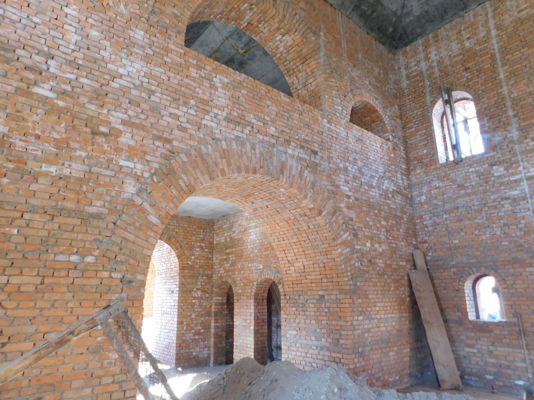Строительство нового храма продолжается в микрорайоне Горького. В ближайшее время внутри здания планируется начать отделочные работы.