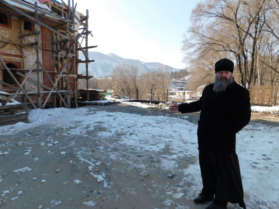 Администрация города выделила свободный участок в районе Горького. Средства собираем с прихожанами. Но этого недостаточно, и есть крупные благодетели, в основном это предприниматели в лесозаготовительной сфере. Также недавно помогло предприятие «Бор», выделив 1000 кубометров грунта, которым мы отсыпали площадку у храма. Хорошо помогает «Дальполиметалл», выделяет песок, щебень, гравий, помогает техникой.