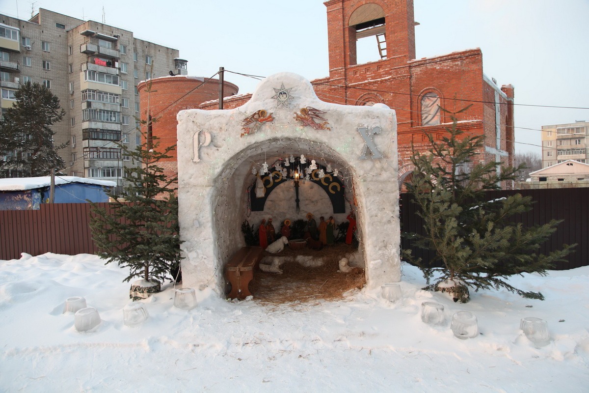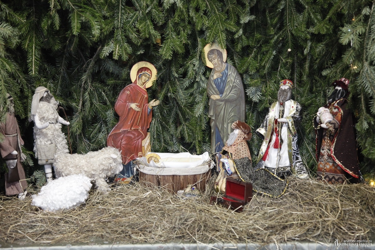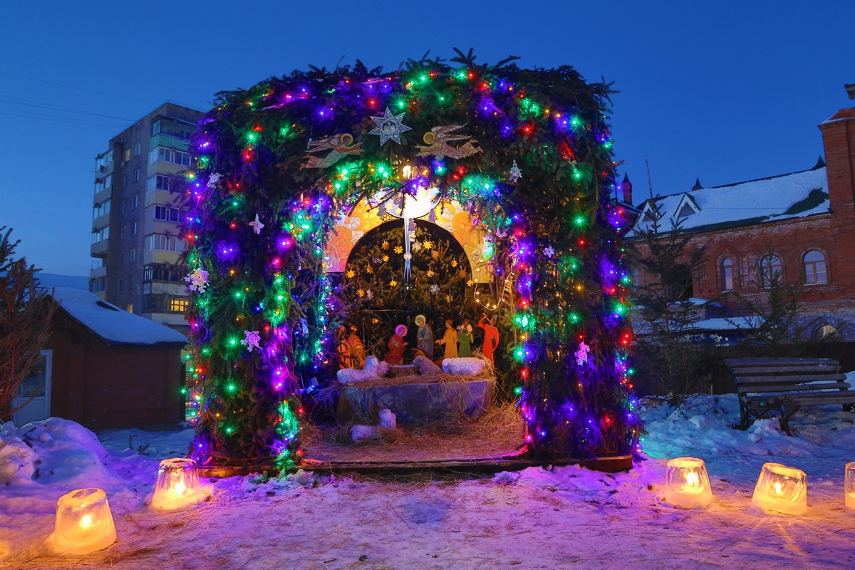 На фото – рождественские вертепы кафедрального Благовещенского собора и храма Рождества Христова в разные годы.