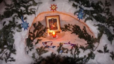 – По традиции, в домах ставится елка – символ вечной жизни, которую нам даровал Христос. Ее венчает звезда, которая напоминает о Вифлеемской звезде, указавшей волхвам путь к рожденному Спасителю. Вечером в сочельник на окно ставится зажженная свеча, как символ души, горящей любовью к Создателю. Она показывает, что в этом доме ждут Христа. После Литургии вся семья садится за праздничный стол, который у нас не отличается от традиционного новогоднего. На Руси обязательным блюдом на рождественском столе был запеченный гусь и, конечно, пряники. После Рождества Христова до Крещения Господня наступают особые дни – Святки, в которые принято ходить по гостям и славить торжественными песнопениями – колядками – Рожденного Иисуса Христа.