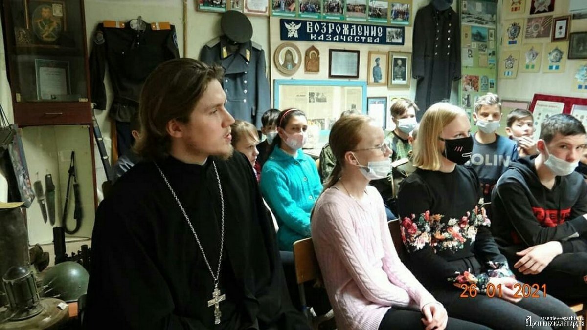 В рамках подготовки к вышеуказанному проекту, согласно утверждённому плану совместных мероприятий Даубихинского городского казачьего общества и Арсеньевской епархии, иерей Дмитрий Овчинников и начальник штаба ДГКО Дмитрий Чернявский 25 января в стенах Анучинского краеведческого музея провели урок – «Казачий час» с учащимися 6-а класса Анучинской общеобразовательной школы.