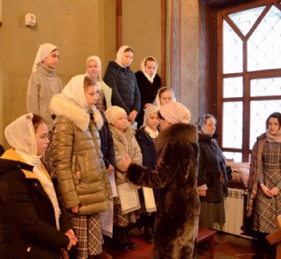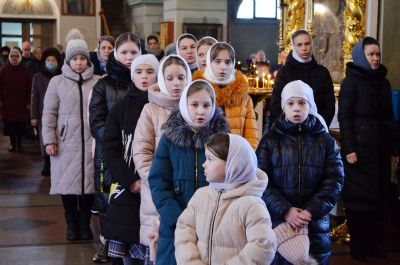 В богослужении приняли участие воспитанники школы-интерната при Николо-Шартомском монастыре и воспитанницы православной школы имени свт. Тихона Задонского. Молодые люди были иподиаконами, а девочки пели на клиросе.