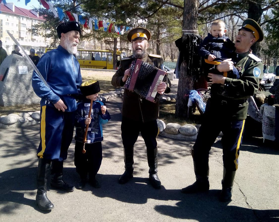 Что смогли увидеть гости мероприятия на фестивальных площадках? Прежде всего, организованный местными казаками «Казачий круг». По стародавней традиции центральное место схода занимает икона. Особо чтимый в среде казачества образ Пресвятой Богородицы Державной из кафедрального Благовещенского собора для этого случая предоставила Арсеньевская епархия. Торжественное открытие круга началось с молитвы. Одним из наиболее ярких моментов стало вручение ученикам казачьего класса из арсеньевской школы № 10 памятных медалей «130 лет Уссурийскому казачьему войску». За что такая честь, спросите. По итогам командной военно-спортивной эстафеты, проводившейся в преддверии Дня российской армии, эти ребята заняли первое место, обыграв старшеклассников.