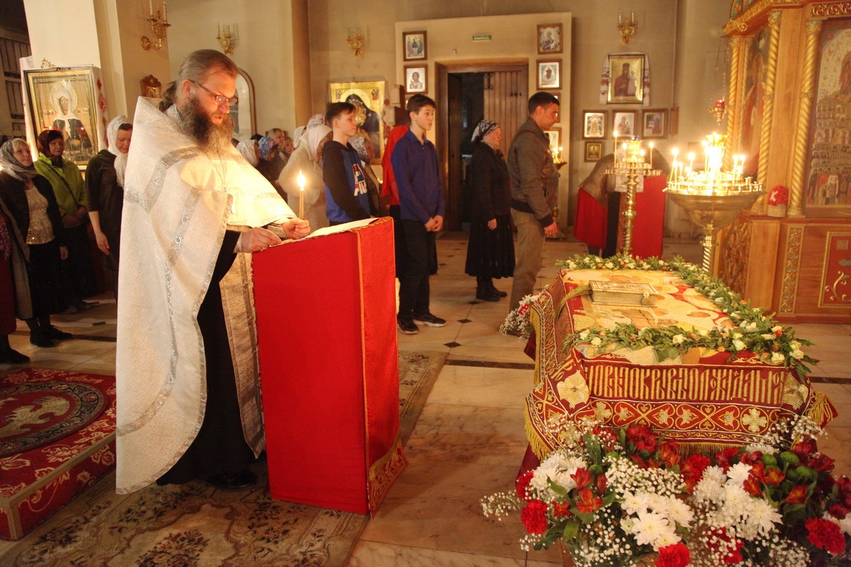 По окончании богослужения были освящены артосы и пасхальная снедь, которую принесли с собой прихожане. Торжественную Пасхальную службу совершил правящий архиерей Арсеньевской епархии в сослужении иерея Александра Ступы, иерея Владимира Пыжикова, иерея Димитрия Овчинникова, иерея Сергея Федона, диакона Кирилла Зиновьева и диакона Анатолия Яндюка.