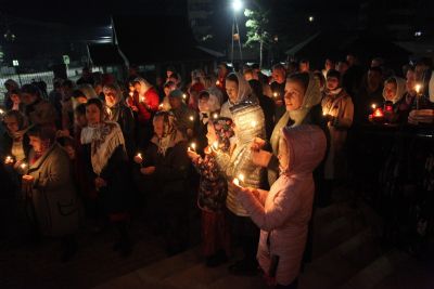 В 23:00 была совершена пасхальная полунощница с чтением Канона, около полуночи — Крестный ход вокруг храма, а ровно в 00:00 – началась радостная пасхальная заутреня, пение «Христос Воскресе!», пасхальные часы и Божественная Литургия.