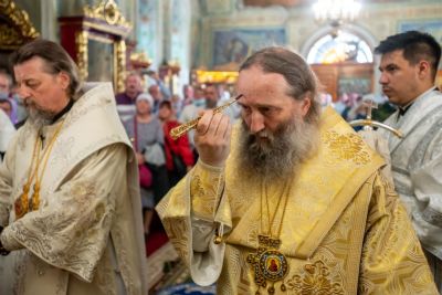 В завершение торжественной службы владыка Иоанн вручил архиерейские благодарности труженикам прихода Вознесенского храма.