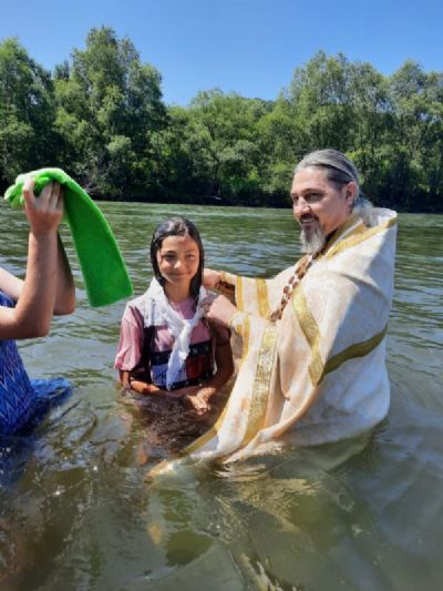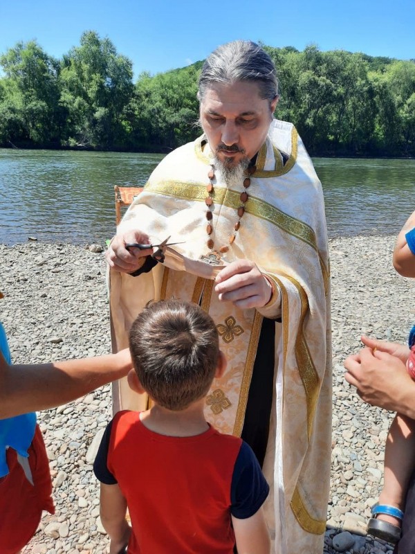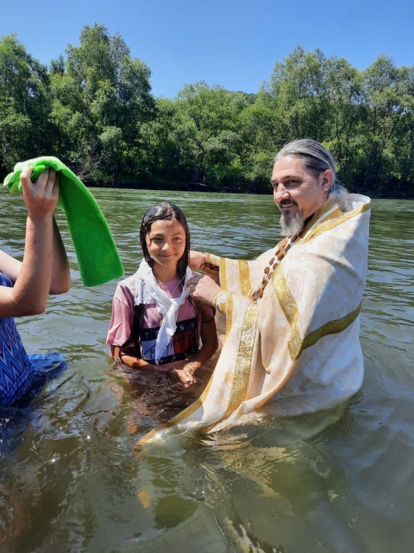Также отец Андрей совершил Таинство Крещения над желающими креститься. Этому событию предшествовала дополнительная подготовка ребят. Расскажем к примеру об 11-летней Карине (в Крещении Христине). Девочка участвовала в разных акциях Возрождения, готовилась к Крещению. Батюшка много с ней беседовал, рассказывал о церковных праздниках, объяснял Символ веры. Мама Христины тоже периодически ходит в храм. После Крещения Христина принимает активное участие в церковной жизни: поет на клиросе в кокшаровском храме.