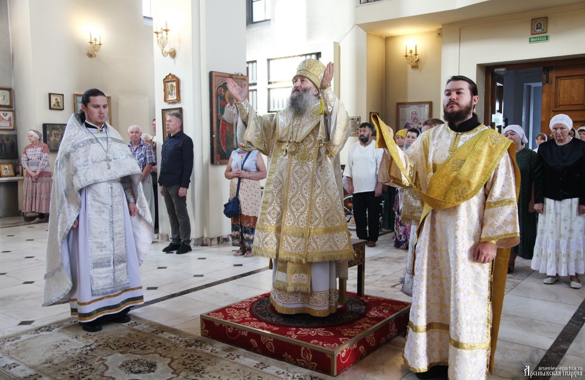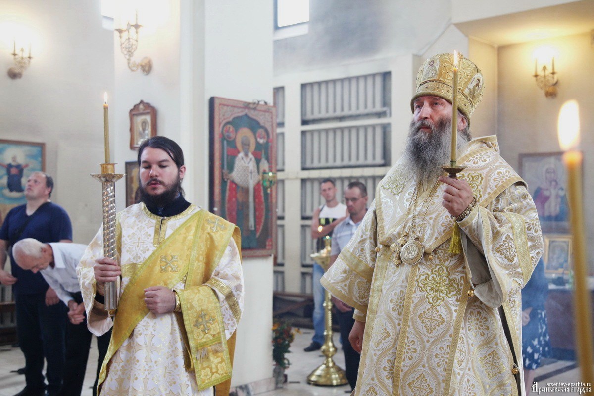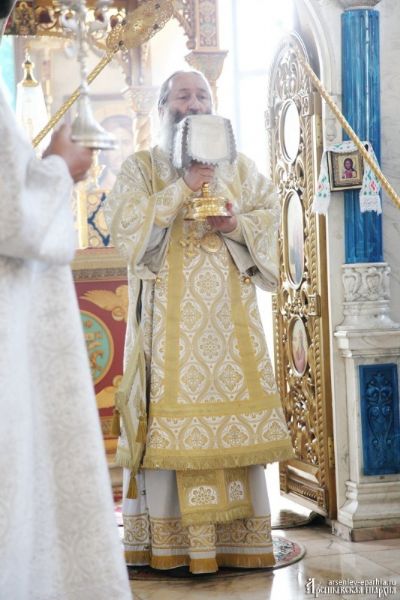19 августа, в день Преображения Господня, епископ Арсеньевский и Дальнегорский Гурий совершил Божественную литургию в кафедральном Благовещенском соборе г. Арсеньева в сослужении иерея Владимира Пыжикова, иерея Димитрия Овчинникова, диакона Кирилла Зиновьева.