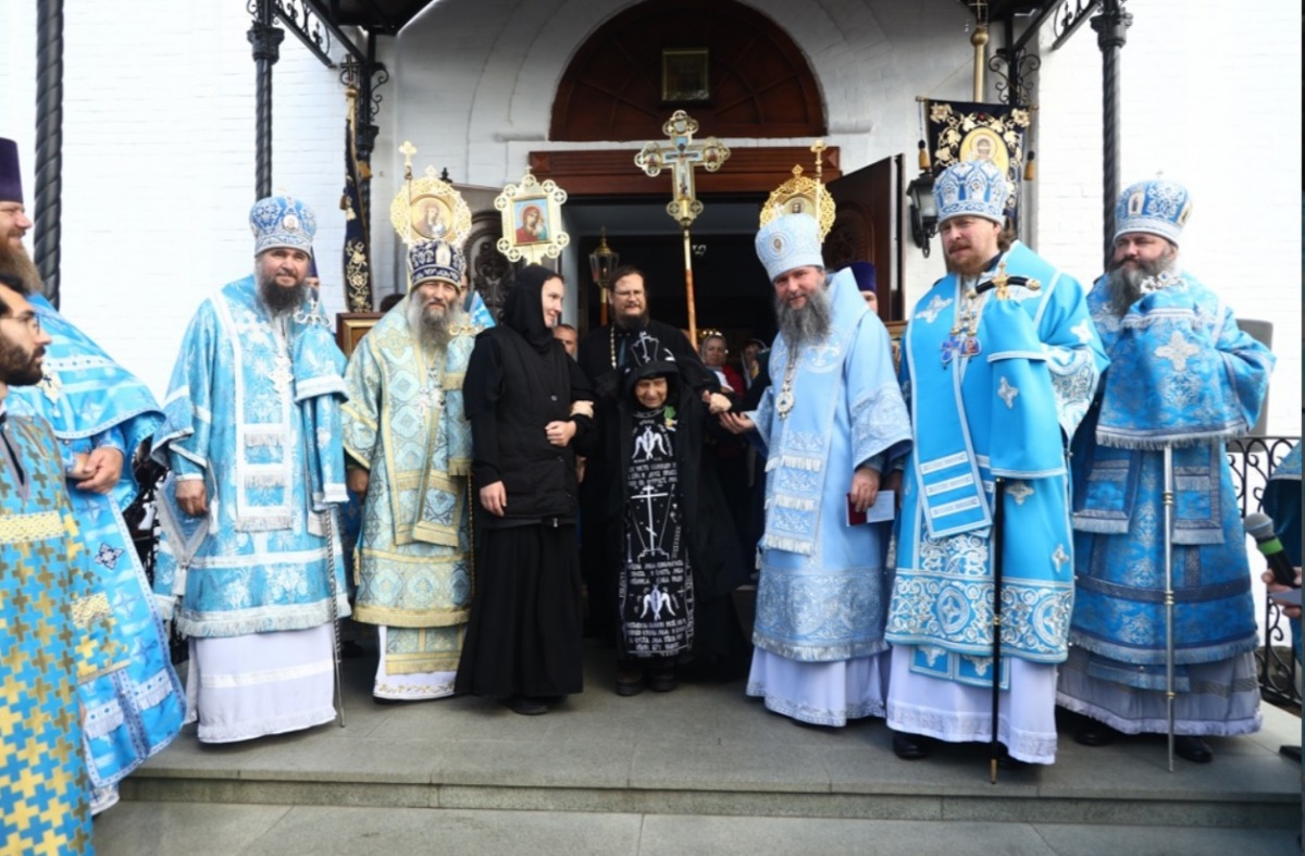 По завершении Божественной литургии состоялся Крестный ход вокруг Свято-Покровского храма обители. У могилок первых настоятельниц обители в новейшей истории Русской Церкви матушки Василисы (Занковой) и матушки Софии (Любых) владыка Евгений с клириками совершили заупокойную литию.