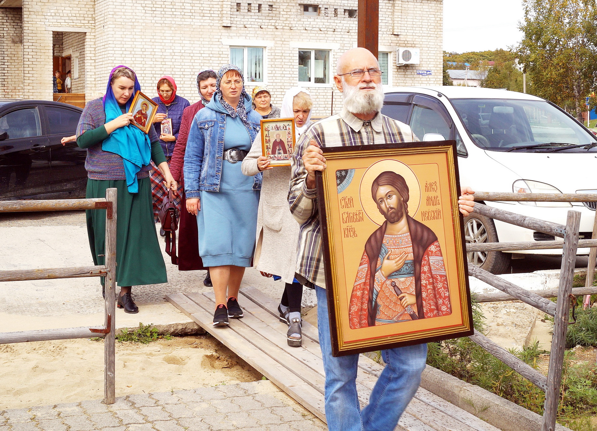 Справка. 11 сентября в нашей епархии начался автомобильный Крестный ход с иконами святого благоверного князя Александра Невского и святителя Иннокентия Московского. Крестный ход приурочен к празднованию 800-летия со дня рождения святого благоверного князя Александра Невского и 10-летию Арсеньевской епархии.