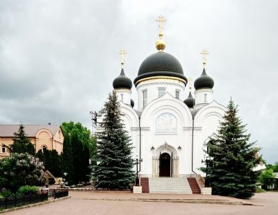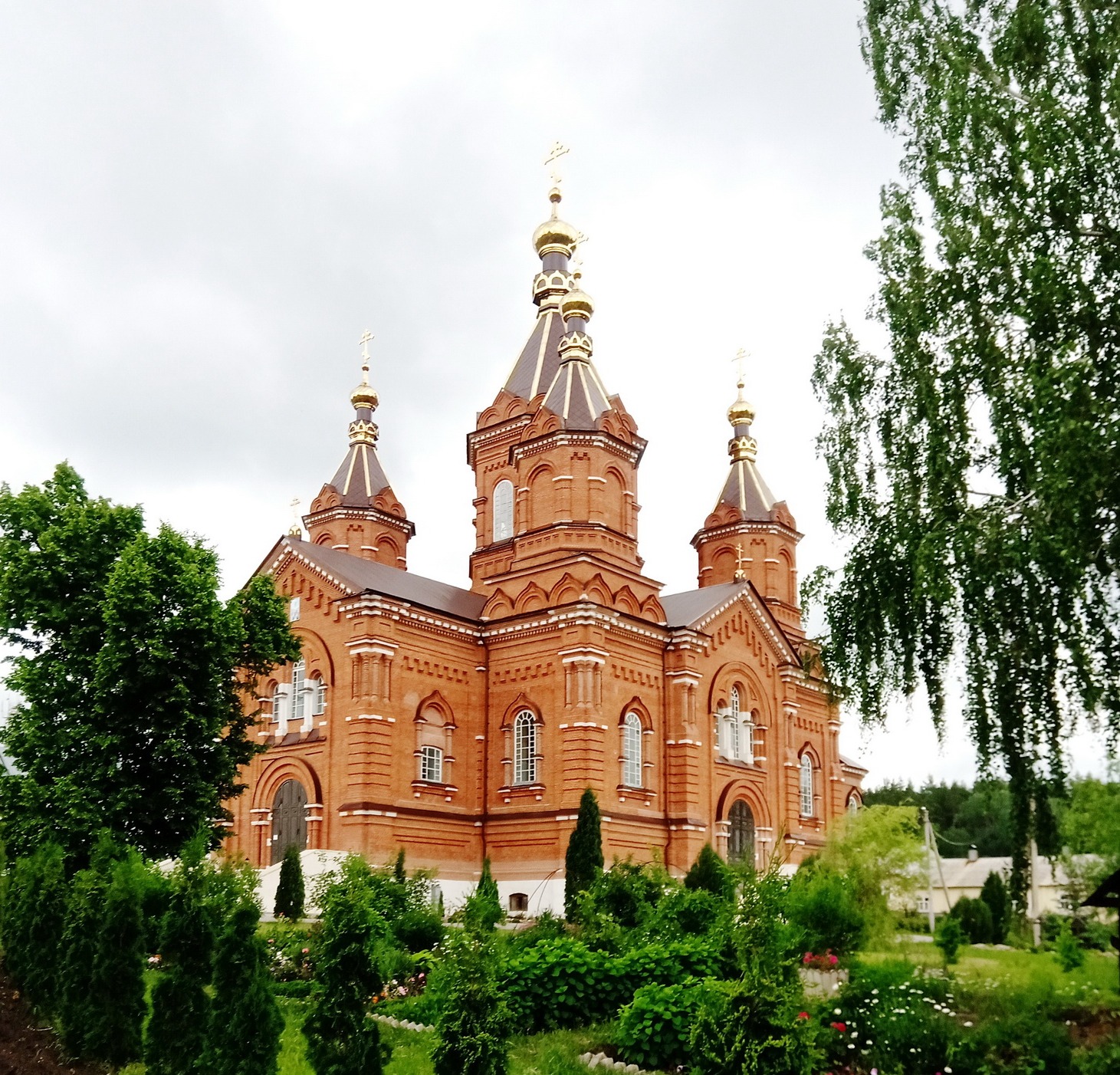 Красивый пятиглавый каменный храм, освященный в честь Вознесения Господня, сразу привлекает к себе внимание. Это соборный храм монастыря. В нем два придела: правый придел был освящен в честь Святителей Николая Мир Ликийских чудотворца и свт. Тихона Задонского, левый – в честь Всех Святых. Слева от соборного храма расположен двухэтажный сестринский корпус, с трапезной и храмом в честь святого благоверного князя Александра Невского.