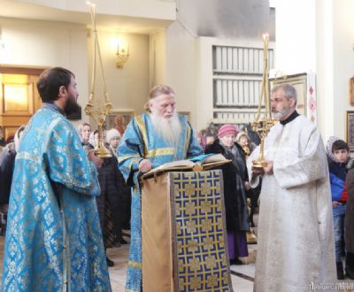 Владыке сослужили иерей Александр Ступа и диакон Анатолий Яндюк. Накануне вечером было совершено Всенощное бдение в сослужении тех же клириков.
