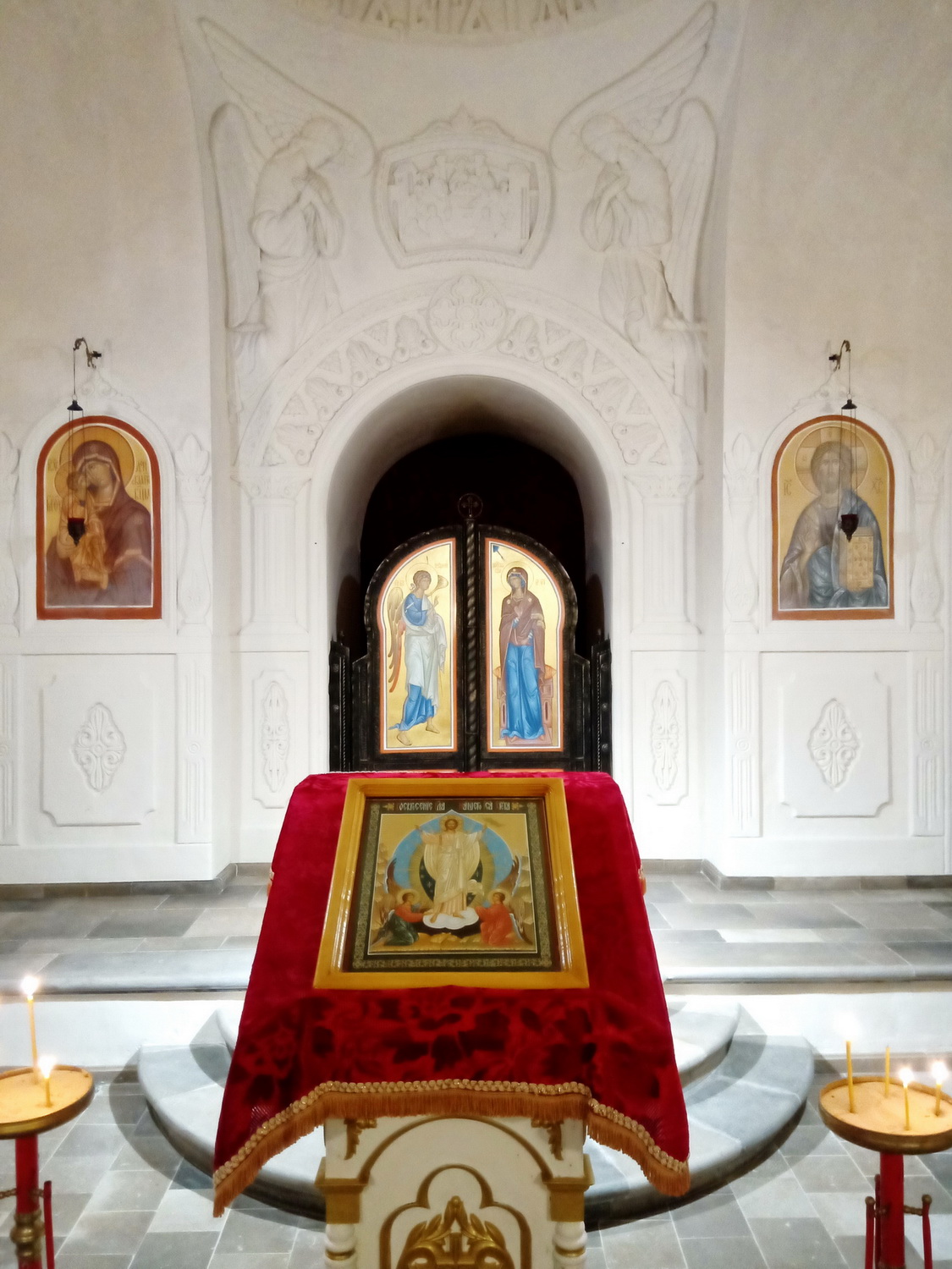 В монастыре мы также посетили пещерный храм, прошли вокруг крестным ходом со свечами и с пасхальным пением.