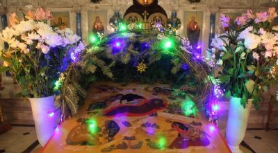 В храме, украшенном елочками, тихо горят свечи и теплятся лампадки… Скоро начнется всенощная служба, Крестный ход вокруг Собора. Прихожане нарядно одеты и лица их сияют радостью… Прожит ещё один год!