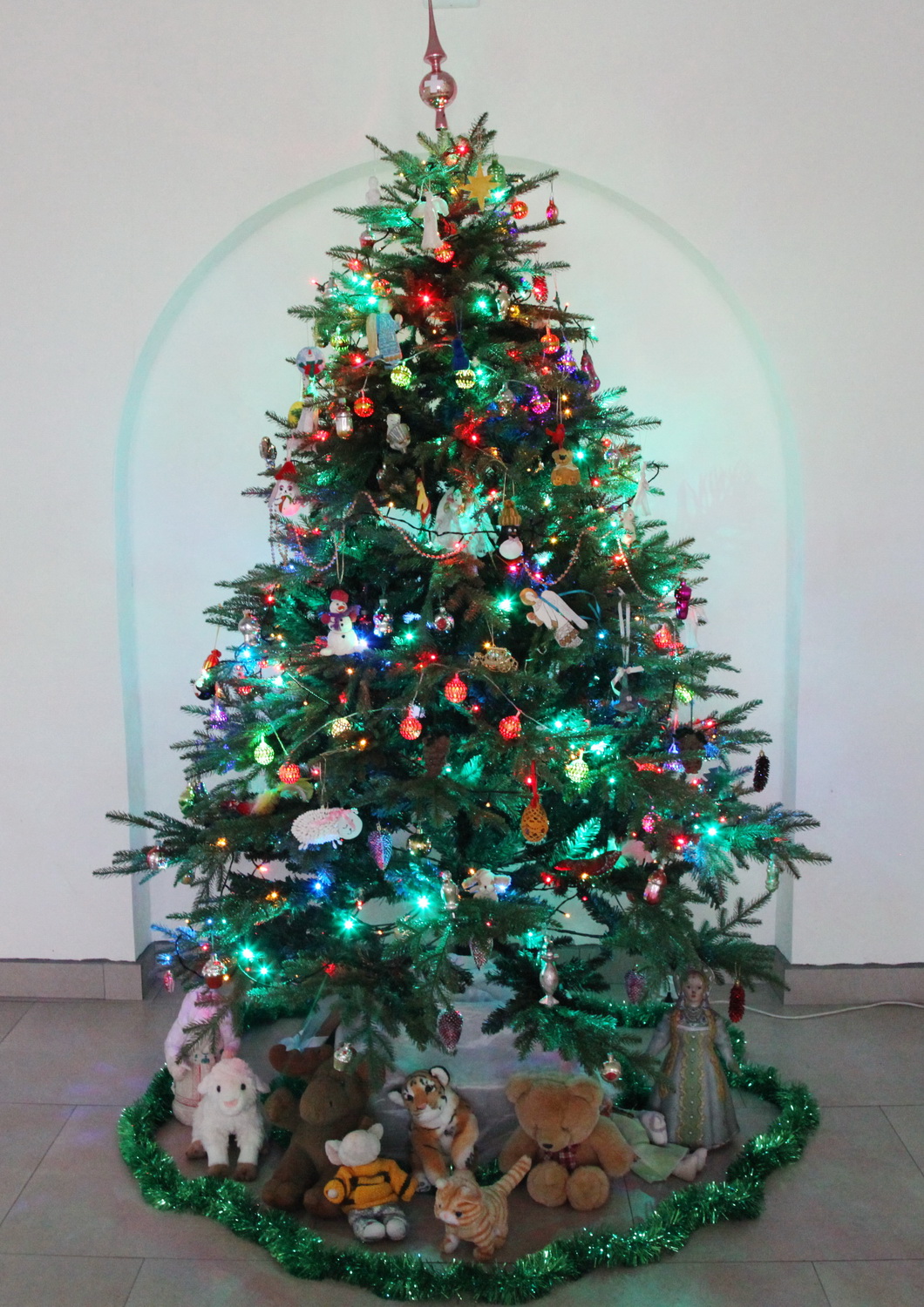 Какое Рождество без Символа вечной жизни, которую нам даровал Христос. Наш Центр также украшен пушистой и зеленой елью. Игрушки на ней эксклюзивные и сшитые вручную, есть подаренные, а есть стеклянные, как из нашего детства. Гирлянды на елке напоминают пуговки от облачения священнослужителя. От нашей красавицы невозможно отвести глаз.