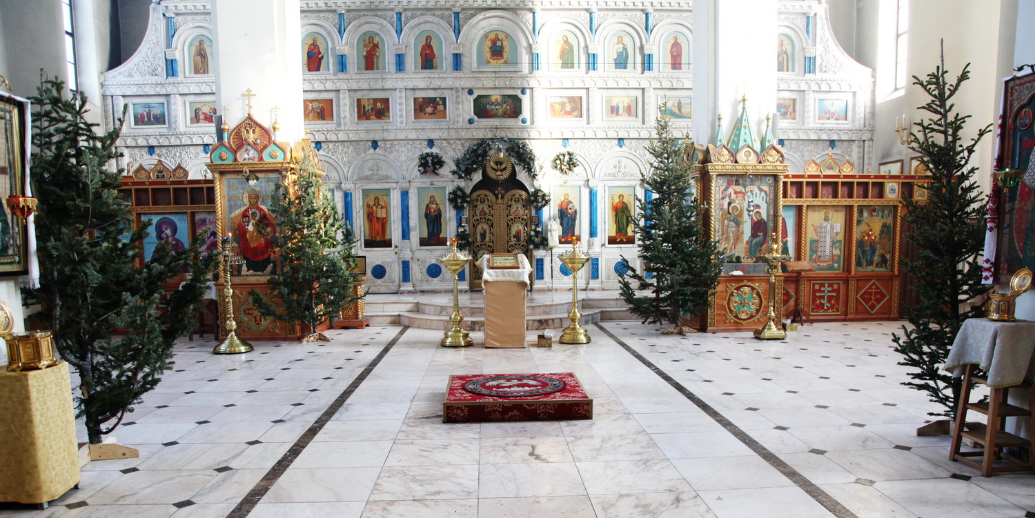 В храме, украшенном елочками, тихо горят свечи и теплятся лампадки… Скоро начнется всенощная служба, Крестный ход вокруг Собора. Прихожане нарядно одеты и лица их сияют радостью… Прожит ещё один год!