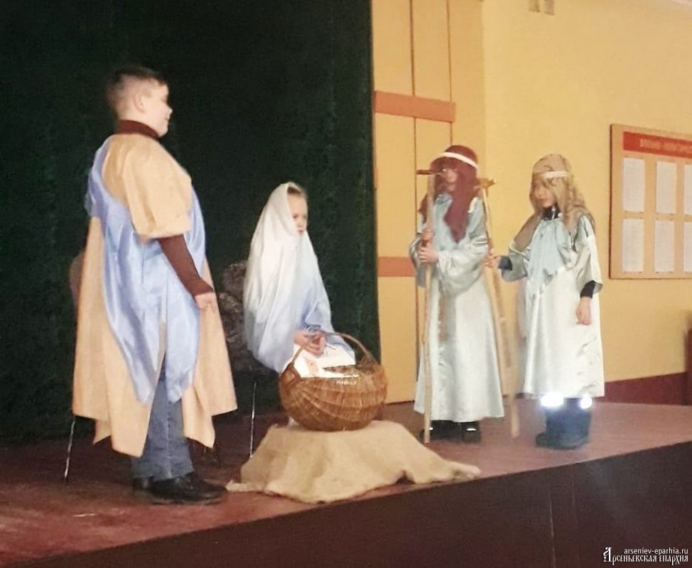 Одно из них состоялось в клубе воинской части с. Старосысоевка. Дети поздравили воинов с праздником: читали стихи, спели песню и представили сценку о пастухах и волхвах, которые пришли в Вифлеемскую пещеру поклониться Богомладенцу Иисусу Христу.