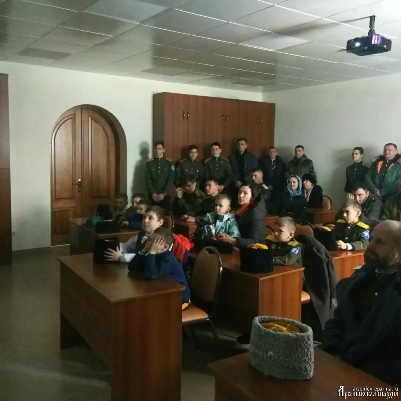 24 января с есаулом Ханановым Константином Евгеньевичем, временно исполняющим обязанности походного атамана Приморского казачьего отдела УВКО, подъесаулом Чернявским Дмитрием Владимировичем, временно исполняющим обязанности атамана ДГКО АГО в МОБУ «СОШ № 10» г. Арсеньев для учащихся 5, 10 класса казачьей направленности и 9 класса с направленностью ВМФ провели актовую часть на тему: «ГЕНОЦИД КАЗАКОВ». В завершении помолились за упокой душ невинно-убиенных казаков и иже с ними в годы политических репрессий.