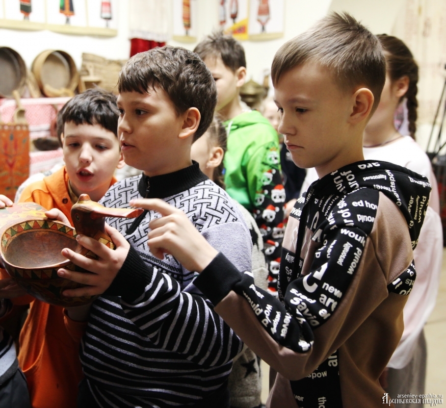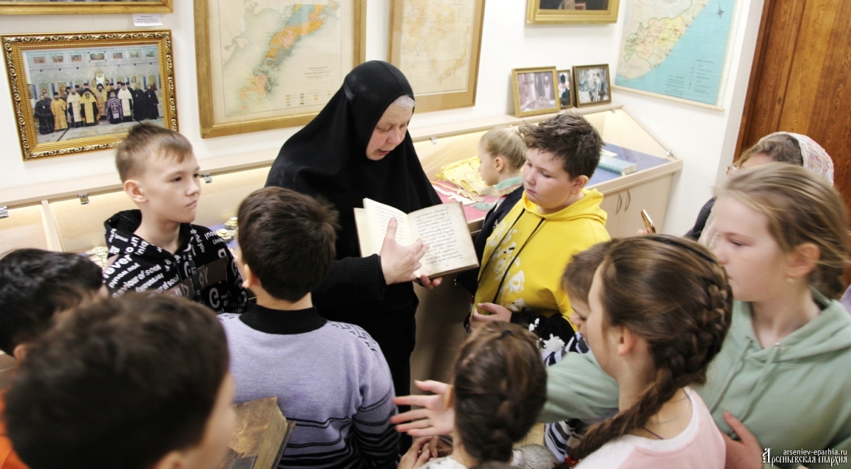 В январе такие экскурсии были проведены для 3-х школ г. Арсеньева. В них приняли участие около 100 человек. Интересные и познавательные экскурсии по залам музеев с разными экспозициями проводила инокиня Мария (Воробьева). Она показала подлинные русские народные костюмы и предметы быта. В музеях экспонаты трогать нельзя, а в нашем музее дети не только потрогали, но попробовали их в деле: подержали утюги, разглядели прялку.