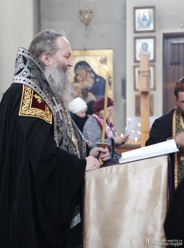 В понедельник первой седмицы Великого поста Преосвященнейший Гурий, епископ Арсеньевский и Дальнегорский молился за великопостной утреней, часами и вечерней в Кафедральном Благовещенском соборе г. Арсеньева. Вечером этого же дня архиерей совершил великое повечерие с чтением канона преподобного Андрея Критского. Епископу сослужили иерей Александр Ступа, иерей Владимир Пыжиков, иерей Димитрий Овчинников, диакон Кирилл Зиновьев, диакон Анатолий Яндюк. Вместе с Владыкой и клириками Благовещенского собора в богослужении приняли участие многочисленные прихожане.
