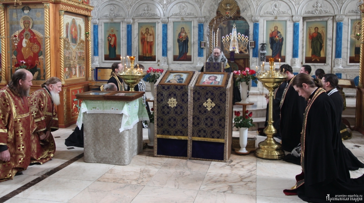По традиции все верующие вместе с духовенством испросили друг у друга прощения. В завершении богослужения епископ Арсеньевский и Дальнегорский Гурий преподал свое архипастырское благословение на начало Святой Четыредесятницы.
