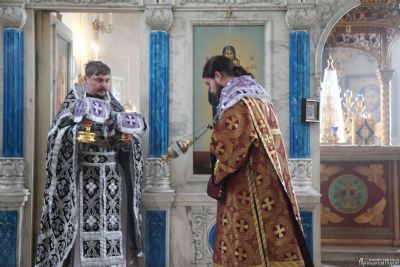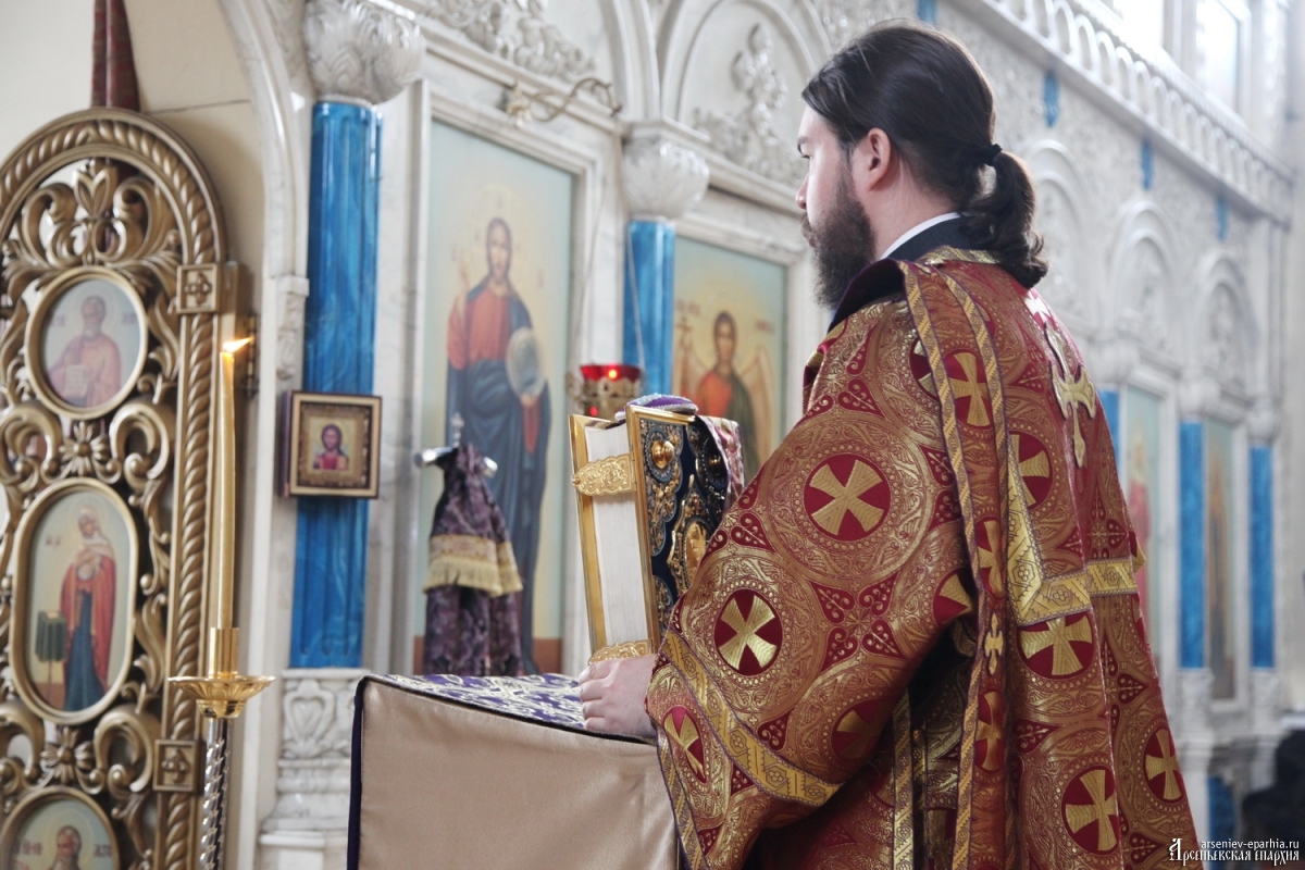 Его Преосвященству сослужили иерей Александр Ступа и диакон Кирилл Зиновьев. За Литургией пел хор сестер Арсеньевской монашеской общины. Прихожане сподобились Причастия Святых Христовых Тайн.