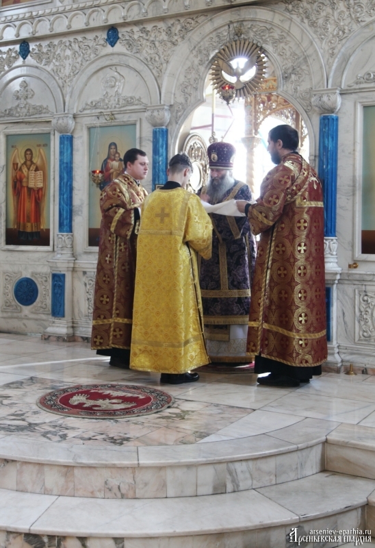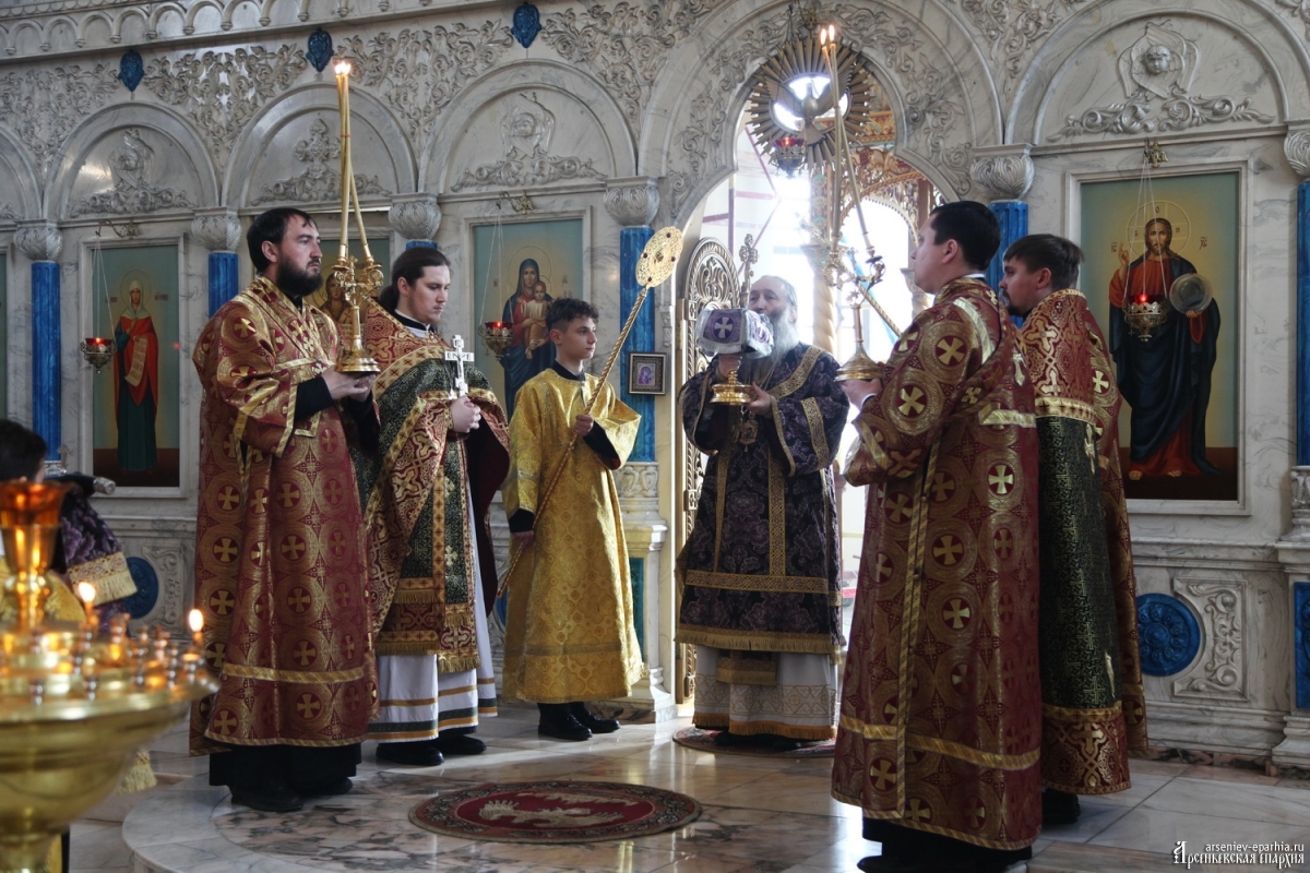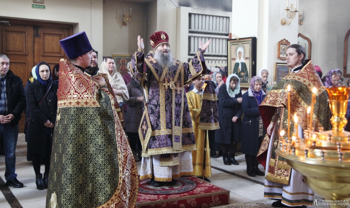 Накануне третьей недели Великого поста, Крестопоклонной, 16 марта, правящий архиерей совершил Всенощное бдение с чином выноса Честного и Животворящего Креста Господня в Кафедральном Благовещенском соборе г. Арсеньева. Ему сослужили иерей Александр Ступа, иерей Димитрий Овчинников, диакон Кирилл Зиновьев и диакон Анатолий Яндюк. На следующий день епископ Арсеньевский и Дальнегорский, Гурий возглавил Божественную литургию в сослужении тех же клириков.