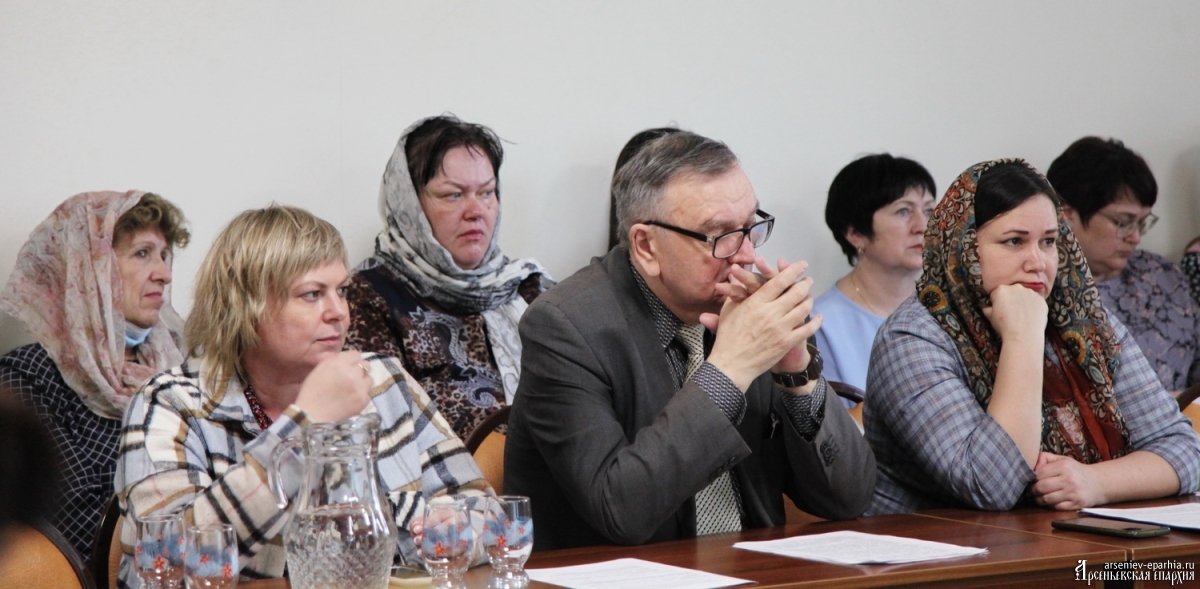 В обсуждении проблемы приняли участие священники Арсеньевской епархии иерей Владимир Пыжиков и иерей Александр Ступа. Они говорили о необходимости духовного подхода к воспитанию детей и сохранении семейных ценностей, ведь именно в семье закладывается отношение ребёнка к тем или иным сторонам жизни. Эта тема прозвучала и в выступлении Александра Ивановича Покрашенко – учителя литературы и истории СОШ №5, представителя учительской династии.