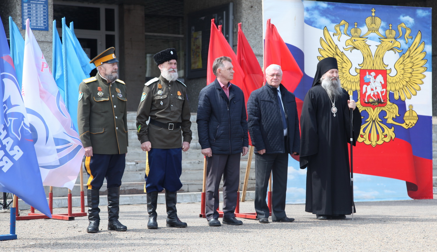 К собравшимся обратились Глава городского округа Владимир Пивень, председатель Думы городского округа Анатолий Щербаков, председатель Совета ветеранов Олег Волошенко, Епископ Арсеньевский и Дальнегорский Гурий со словами благодарности нашей великой Родине, славной своим героическим прошлым и настоящим, солидарности с бойцами, которые сейчас ведут борьбу с нацизмом.