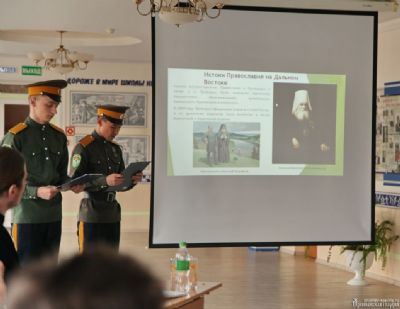 Многолетний уникальный опыт воспитания будущих казаков имеется в МОБУ СОШ № 10. В своём выступлении учащиеся 10 В класса Даниил Вахрамов и Евгений Ломакин осветили историю православного казачества в Приморье, а их классный руководитель О.Г. Карнажицкая рассказала об особенностях этого класса, об активной гражданско-патриотической позиции ребят и их успешном участии в профильных соревнованиях регионального и всероссийского уровней.