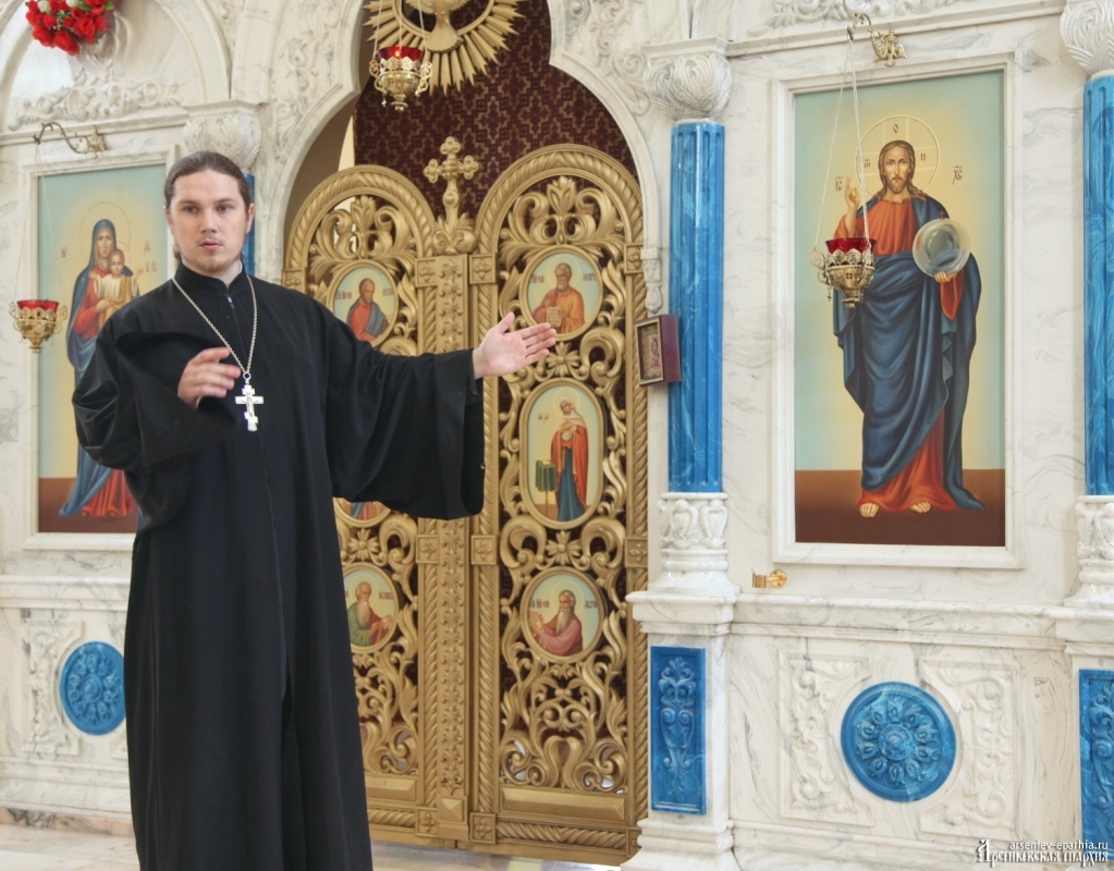 Затем ребят ждал еще один сюрприз. Иерей Димитрий Овчинников провел для школьников экскурсию по Кафедральному Благовещенскому собору.