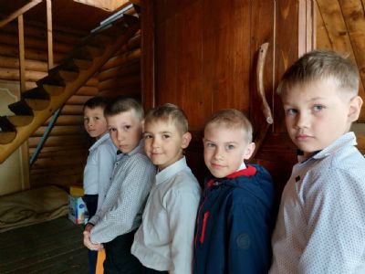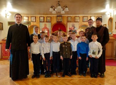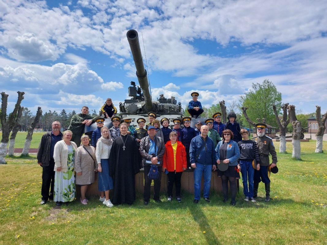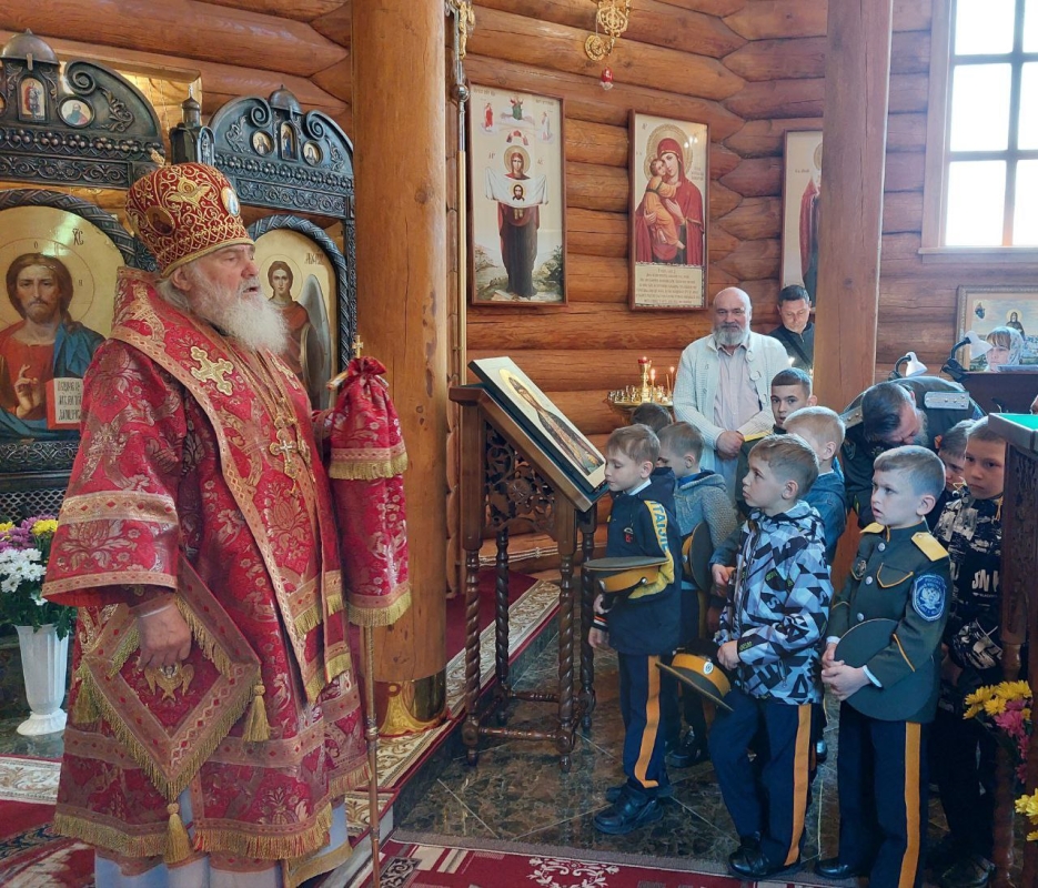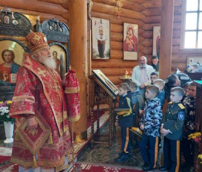 Перед началом экскурсии помолились во время Божественной Литургии в суворовском храме, в честь святого благоверного князя Александра Невского. Многие ребятишки причастились Святых Христовых Таин. Участвовали в Крестном ходе вокруг храма. Митрополиту Вениамину от казачьего класса передали на молитвенную память икону Спаса Вседержителя, на что Владыка обещал молить Бога перед Образом о всём уссурийском казачестве. По окончании проповеди митрополит Вениамин благословил каждого участника поездки.