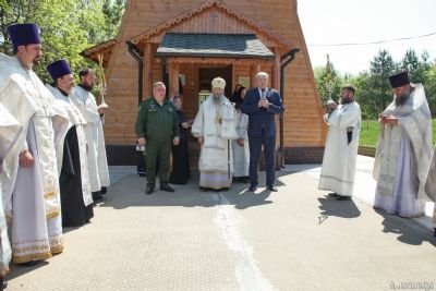 Справка. В апреле 2018 года в танковой воинской части состоялась закладка деревянного храма во имя святого Димитрия Солунского, а 10 сентября 2021 года – открытие храма. Он изготовлен из дерева. В верхней части церковного сооружения имеется колокольная звонница.