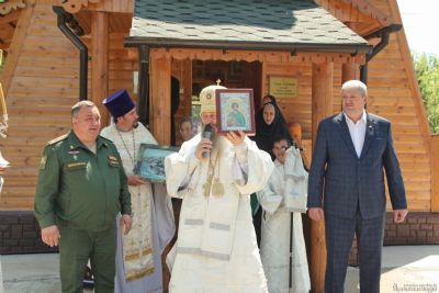 После освящения храма и Божественной литургии состоялась торжественная часть. Военнослужащих танковой части на торжественном построении личного состава приветствовали Глава Арсеньевского городского округа Владимир Сергеевич Пивень, епископ Арсеньевский и Дальнегорский Гурий и командир части Дмитрий Вячеславович Кащаев. Владыка вручил грамоты всем принимающим активное участие в строительстве и благоустройстве храма.