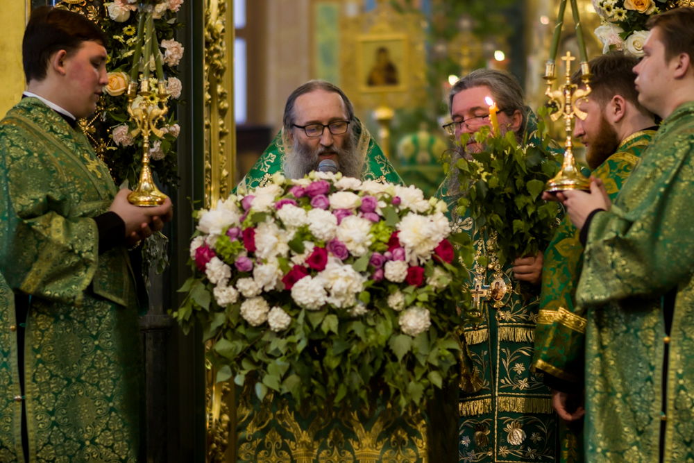 В этот праздничный день Свято-Троицкий собор, как и всякий православный храм, благоукрашен цветами и зеленью – в воспоминание о том, что всю красоту мира Господь сотворил для человека.