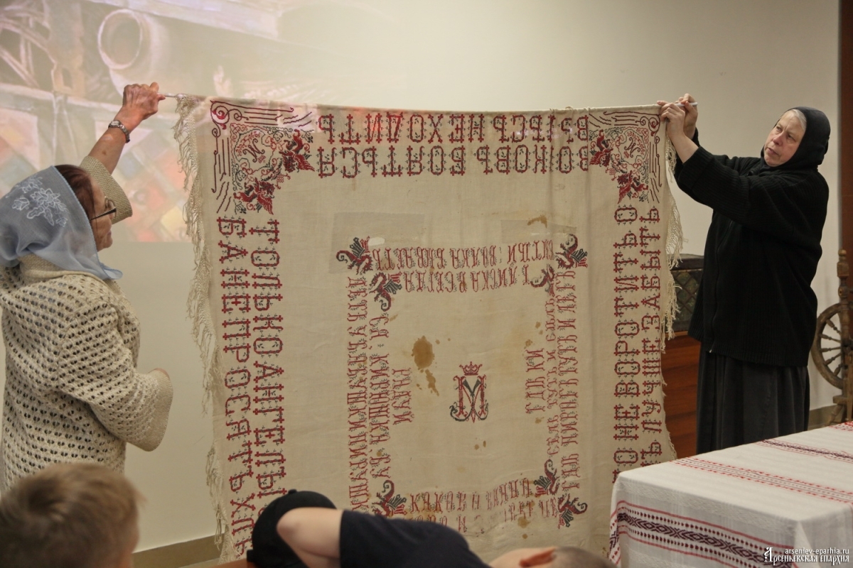 Для чего же сундук был нужен нашим предкам? Что в нем хранилось? Об этом и была экскурсия для ребят, которую провела инокиня Мария (Воробьева). Мать Мария познакомила детей с историей происхождения сундука, которая уходит своими корнями в далекое прошлое, рассказала о том, каких видов были сундуки и что в каждом из них хранилось.