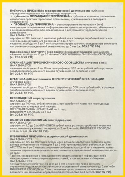 Памятка об ответственности за преступления экстремистской и террористической направленности в Российской Федерации