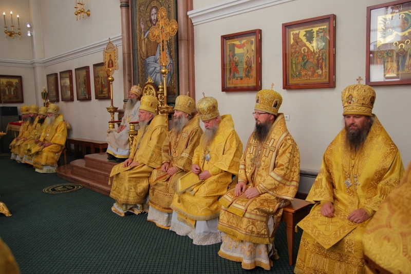 епископ Арсеньевский и Дальнегорский Гурий, епископ Ейский и Тимашевский Павел, епископ Карасукский и Ордынский Филипп, епископ Нижнетагильский и Невьянский Феодосий, епископ Искитимский и Черепановский Лука, епископ Армавирский и Лабинский Василий, епископ Николаевский и Богородский Иннокентий, секретарь епархиального управления иеромонах Николай (Белозеров), настоятель Спасо-Преображенского собора протоиерей Георгий Сивков.